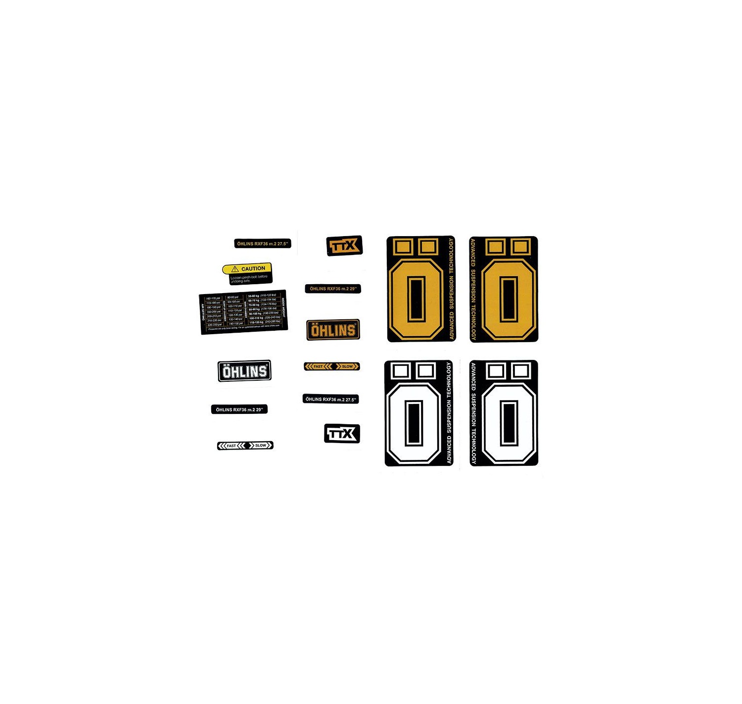 Set adesivi Öhlins RXF36 m.2 giallo/bianco