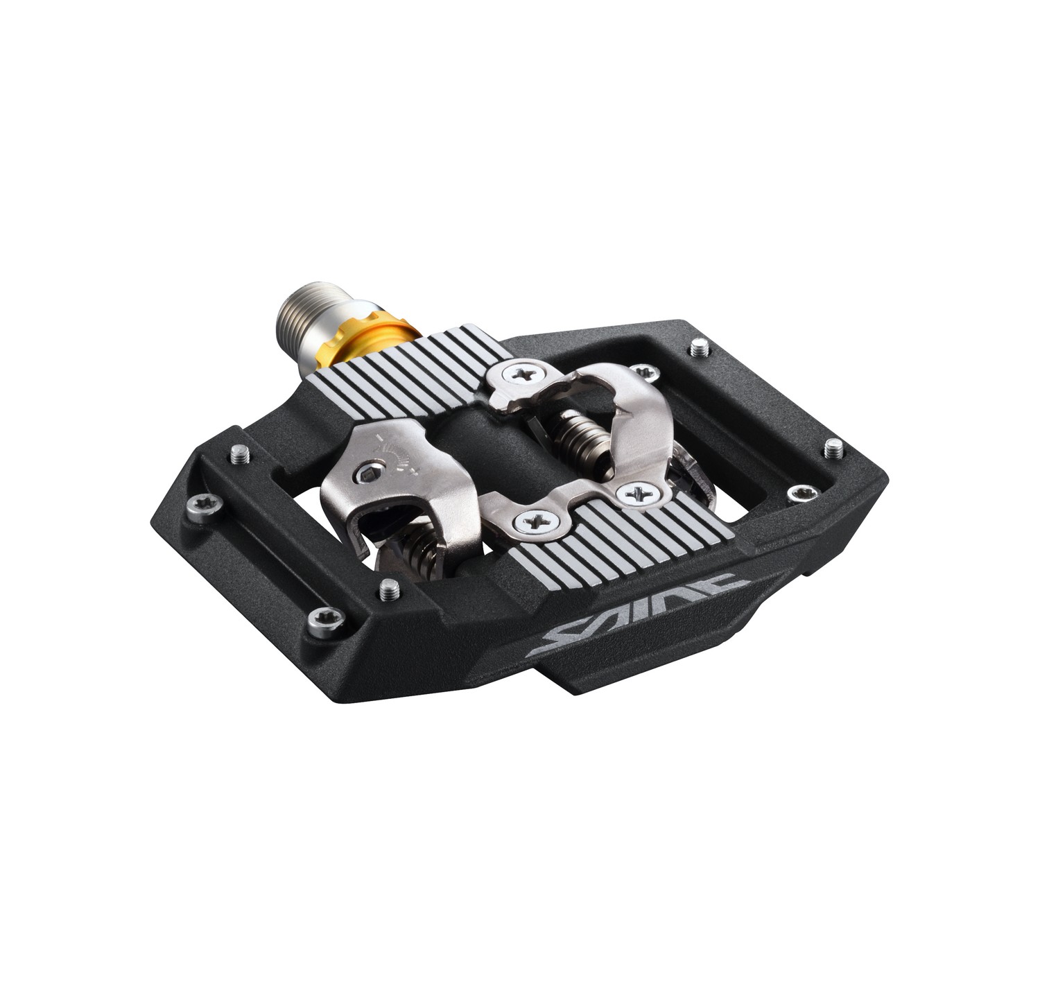 Agganciati ai robusti denti di aggancio dei pedali SPD della serie SAINT M820 per affrontare i più impegnativi tracciati di downhill. La durevolezza ottimizzata dell'asse innalza a nuovi livelli questi pedali sottili e robusti.