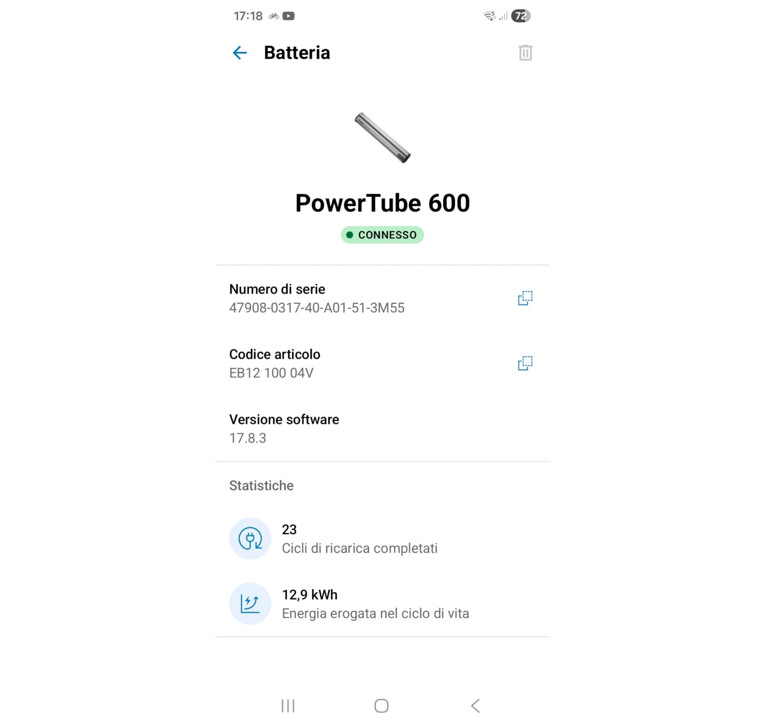• Batteria integrabile nel telaio della bicicletta