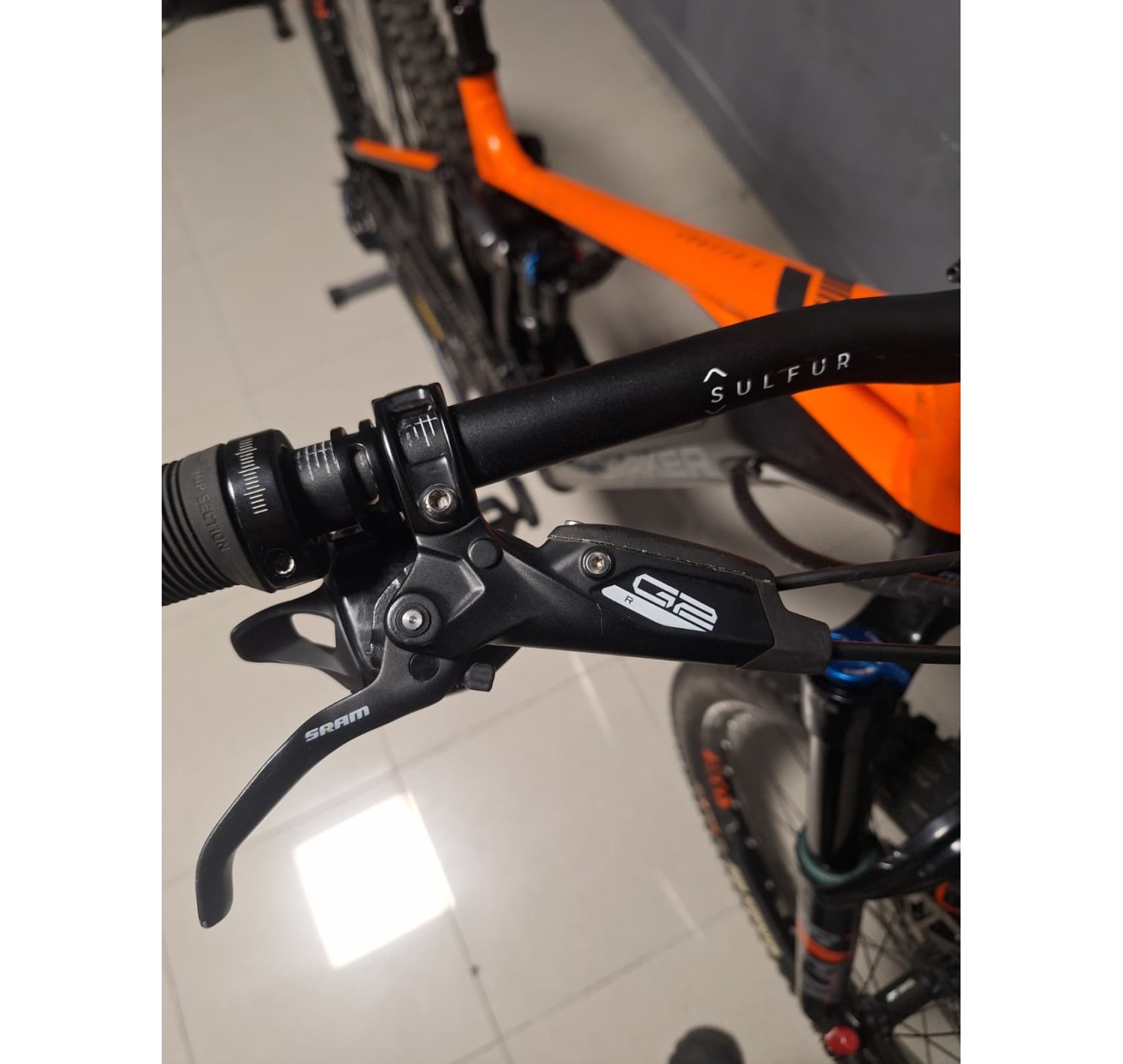 Sram G2 R, pinza a 4 pistoncini, rotore monoblocco Centerline 200mm IS a 6 bulloni, pastiglie organiche